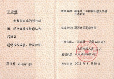2019/01/06蔬菜加工中控制VC损失关键技术研究2012-王宏慧 (2012-08-30)