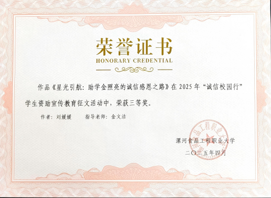 2025/05/20营养烹饪学院在“诚信校园行”征文大赛中荣获佳绩